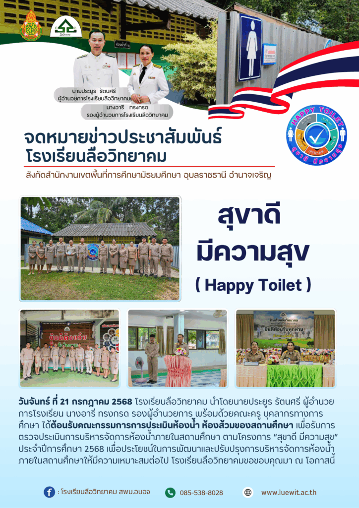 ประจำปีการศึกษา 2568 เพื่อประโยชน์ในการพัฒนาและปรับปรุงการบริหารจัดการห้องน้ำภายในสถานศึกษาให้มีความเหมาะสมต่อไป โรงเรียนลือวิทยาคมขอขอบคุณมา ณ โอกาสนี้